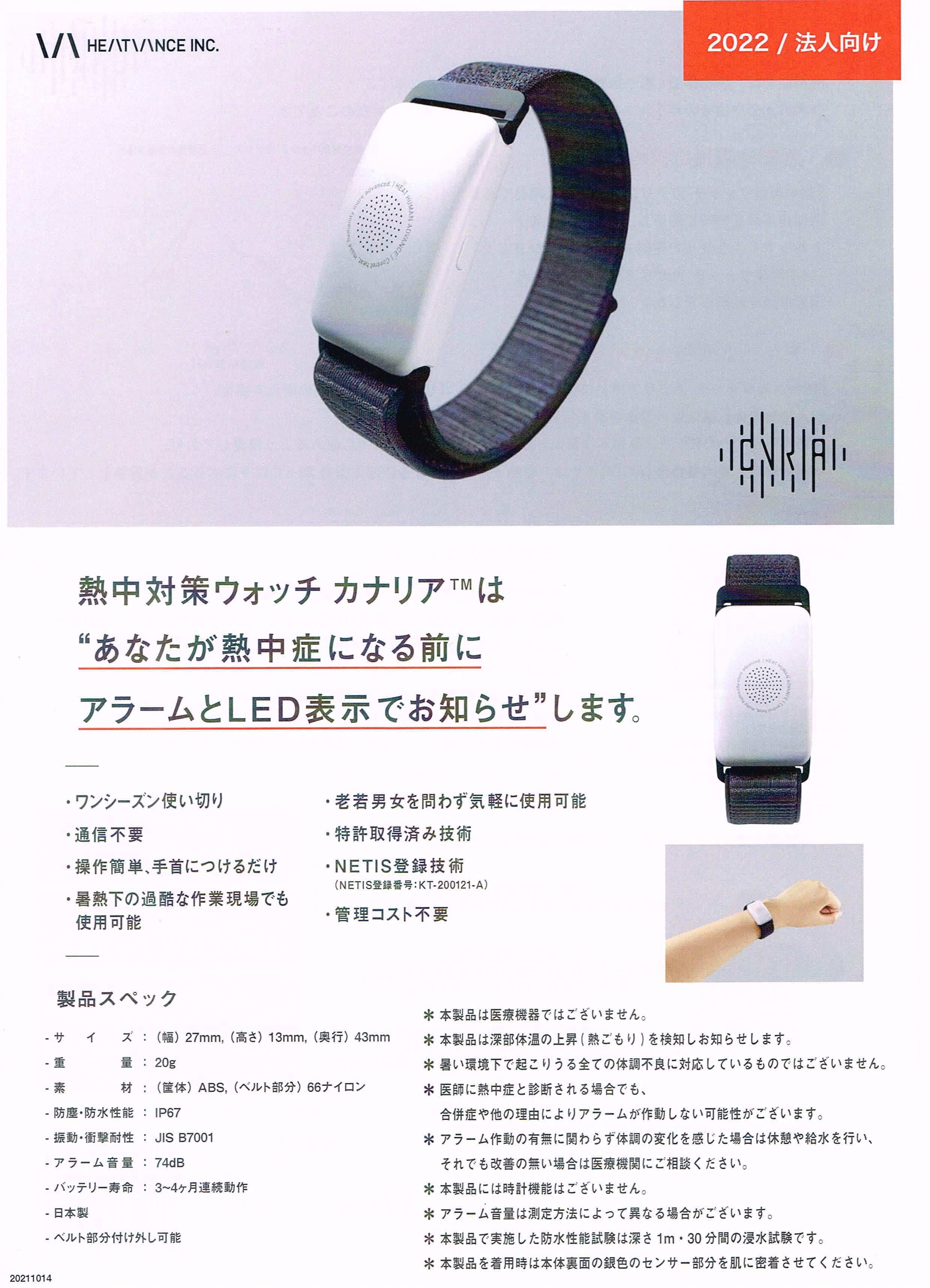 熱中症対策商品の「熱中対策 “カナリア”」が好評だったことを受けて、